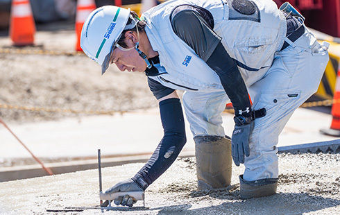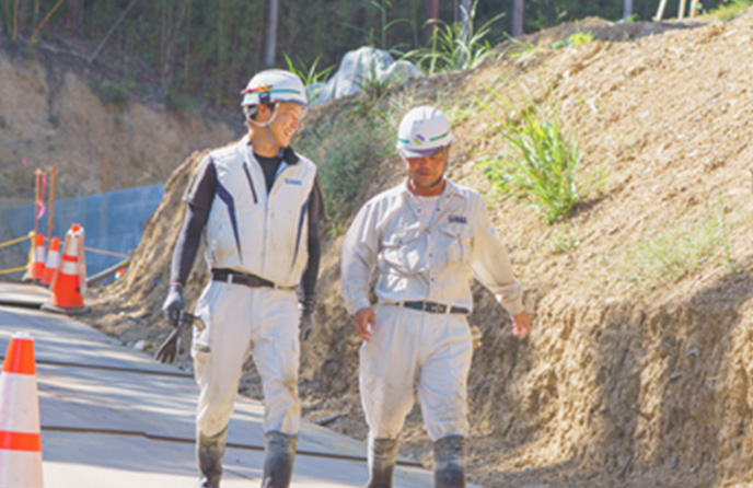 道路や橋、建物の基礎などをつくる、まちづくりの最前線で活躍する仕事です。チームで力を合わせて工事を進めながら、技術と経験を身につけていきます。自らの手で形にした構造物が地域に残る誇らしさと達成感を得られます。