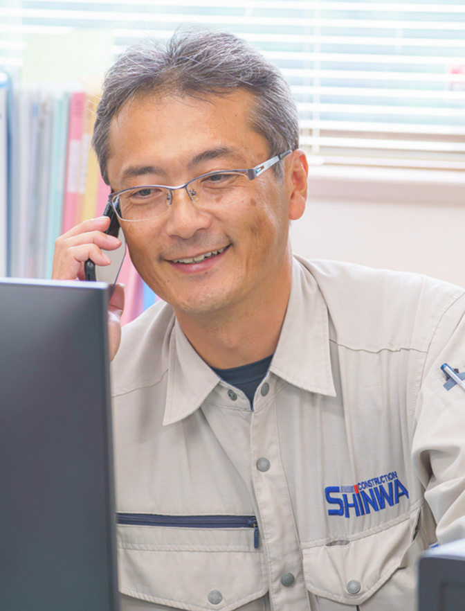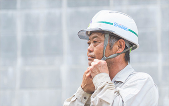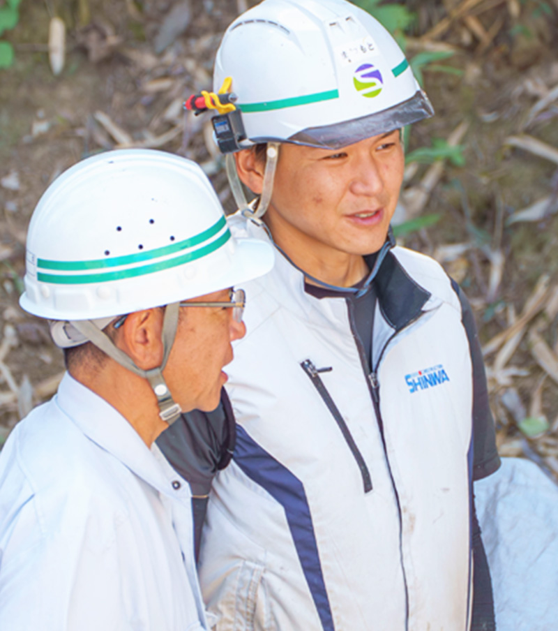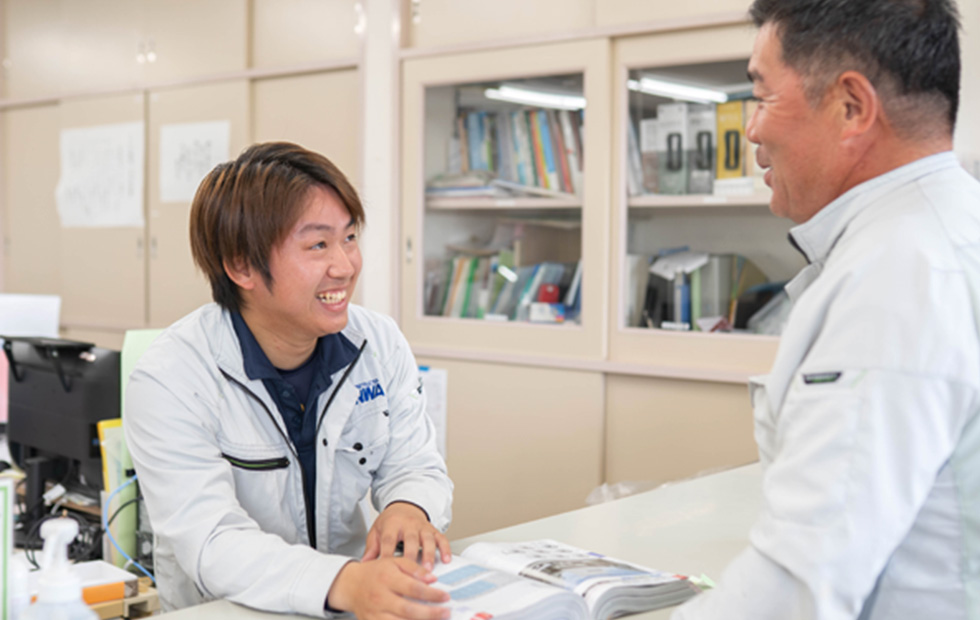 - 高校時代は野球部で活動していたため体力に自信があり、体を動かす仕事に就きたいと考えていました。そんな時、知り合いにいた新和建設の社員から「安定した環境で長く働ける会社がある」と勧められたのが理由です。さらに、私と同じ地元出身の社員も多く在籍していることを知り、親近感を感じて入社を決意しました。